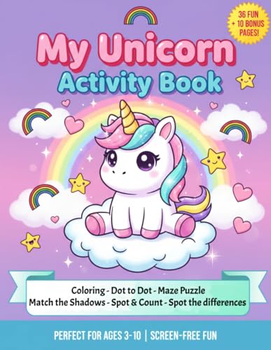 My Unicorn Activity Book: Magical Unicorn Activity and Workbook for Kids Ages 3-10: Fun Activities Including Coloring, Dot-to-Dot, Maze Puzzles, Spot ... the Shadow. 46 Pages (36 Activities + Bonus)