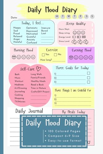 My Daily Mood Diary: Simple Mood Tracking Journal | Daily Tracker for Mental Health & Wellness | Notebook with Prompts | 100 Pages in Color | Small 6×9 Size Log Book
