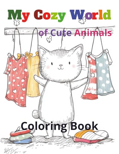 My Cozy World of Cute Animals: 50 Easy and Adorable Animal Scenes at Home, in the Garden, on the Street & at the Store – Fun Coloring Book for Kids Ages 3–8