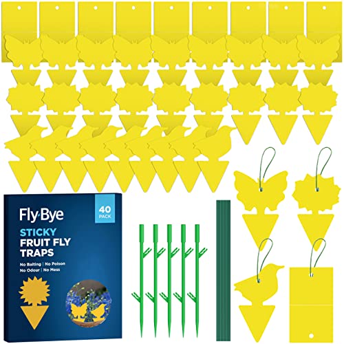 Fly-Bye – 40 x klibbig frukt flugfälla – bekämpa myggor – fruktflugfälla mot sorgsmyggor – svampmyggfälla – klibbig myggfälla – gul tavla sorgsmyggor – värde 40-pack