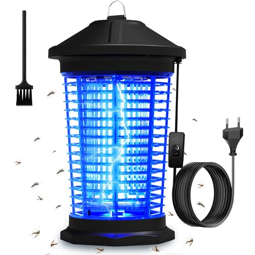 EUQQZU Myggskydd, 4 000 V elektrisk flugdöd med LED-ljus, 20 W UV-myggavvisande enhet, IPX4, vattentät, myggfälla, insektsnatt, för utomhus inomhus