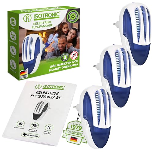 ISOTRONIC Elektrisk myggfångare flygande sektförstörare | mot myggor, mal, små flugor, myggor, UV-ljus (3, stycken)