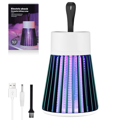 URAQT Anti-mygglampa för yttare, 2 000 V anti-fluglampa med USB-laddning, elektrisk flugdödande mygganordning effektiv fånga myggor, nattfjäril, vit