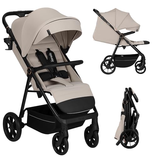 TwistsHake 7in1 Folding Baby Barnvagn | Kaffehållare + mobil hållare + myggnät + regntäcke + paraplyhållare + huvudstöd + filt | Foldbar - Lätt barnvagn | Baby Pushchair | Beige