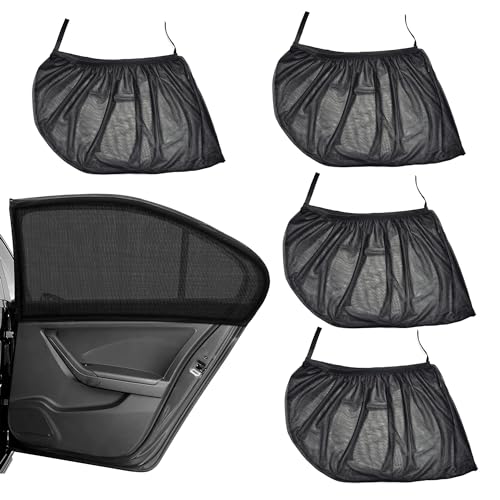 CHENNAN 4 Stycken Bil Myggnät Solskydd Universell Sidofönster Socka Bil Solskydd Med UV-Skydd Ventilerat Myggnät För Bilfönster För 98 % Bilar (svart)