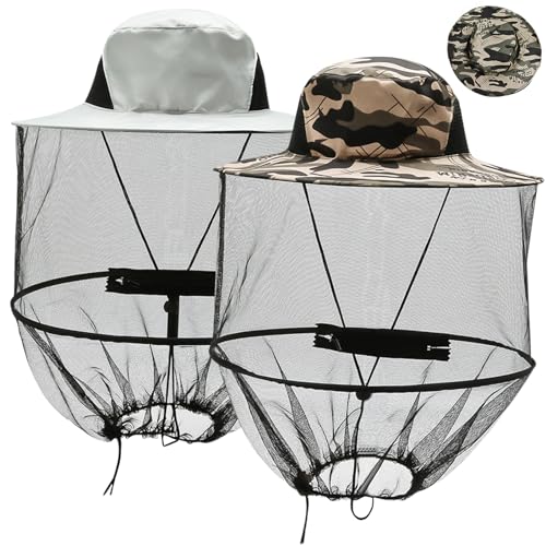 xnnmzhao moskitnät hatt, myggnät biodlare hatt huvudhatt, ansiktsskydd utomhus fiskeutrustning vikbar för utomhus fiske vandring trädgårdsarbete, Kamouflage, 40