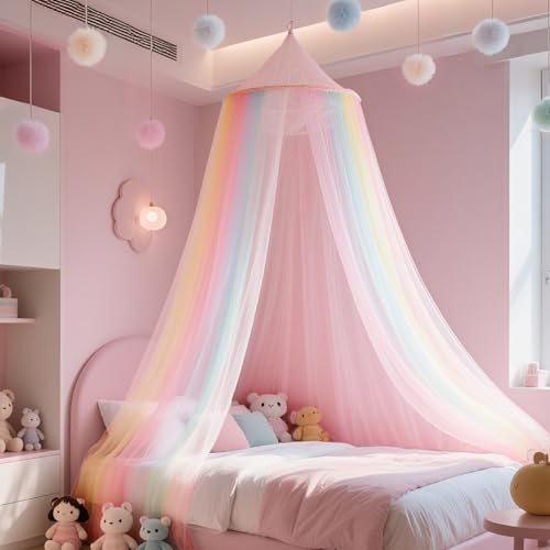 Eimilaly Regnbåge sänghimmel för flickor, myggnät, enkel installation prinsessbaldakin för barn, säng, rum, dekoration