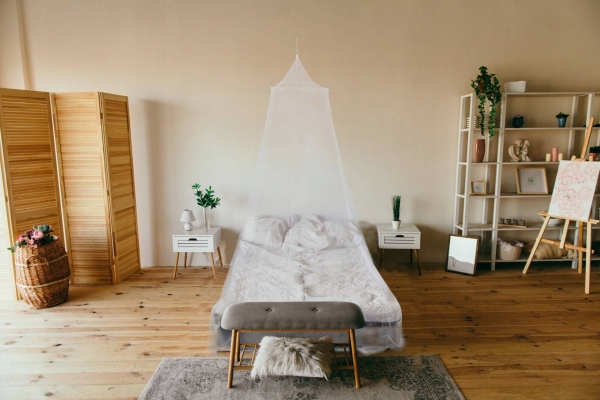 Loft Bomullsloft 4-stols genomskinlig myggnät säng himmel, bomull, vit, en storlek