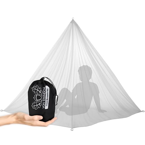 Von Steineich® myggnät [resor] praktiskt resemyggnät | 220 cm x 170 cm | Superlätt myggnät för resor i en praktisk resväska | Perfekt för vandring, camping och semester | myggnät säng