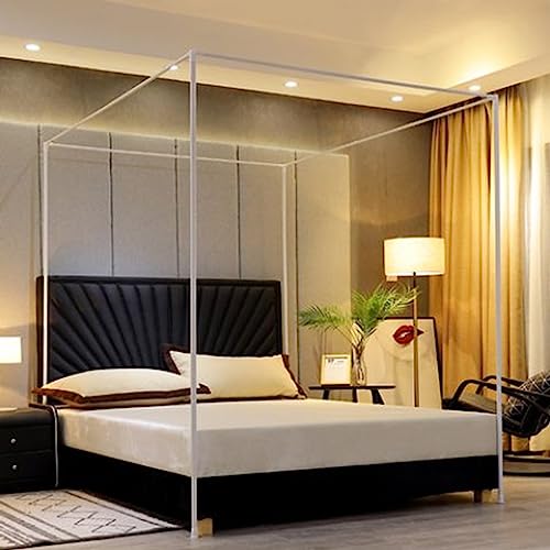 Beyeutao Canopy sängram super king size vit säng baldakin ram sängstänger fyra affischram lek tältram utomhus eller inomhus myggnät ram passar för fyra hörnsängar och mygggardiner.