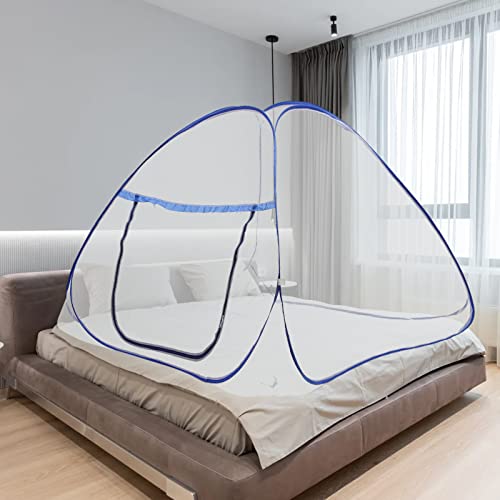 XUEMANSHOP Pop up myggnät, 198 x 180 x 160 cm dragkedja med en dörr bärbart tält resa myggnät säng fristående för sovrummet inga krokar
