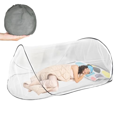 Pmueuff myggnät popup, 200 x 80 x 56 cm myggnät resa myggnät säng vikbar enkel och snabb installation bärbart resetält med förvaringsväska för sovrum utomhus camping