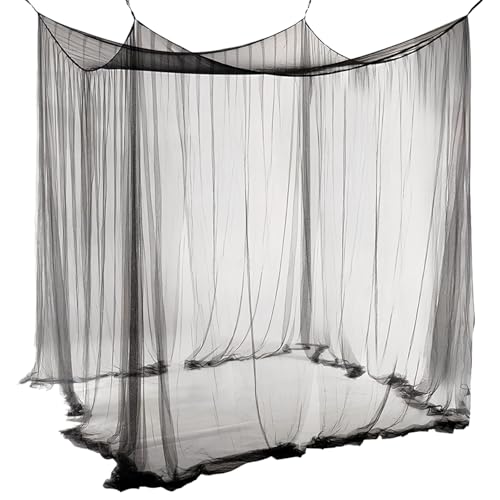 Mengersi 4 hörnstolpe säng baldakin sänggardiner myggnät sovrum dekoration tillbehör (tvilling, svart)