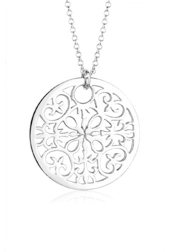 Elli halsband damer snöre mynt hänge rund sol vintage trend i 925 sterlingsilver, 420, Sterlingsilver, Utan