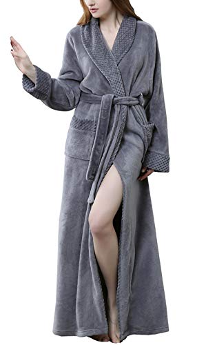 Kinloy Dam lätt V-ringad morgonrock badrock ficka flanell morgonrock mjuka nattkläder myskläder badsjal grå XL 14-20 UK, Grå, XL