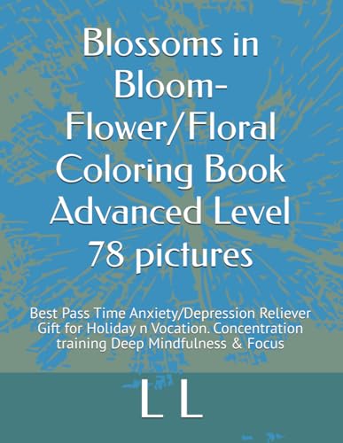 Blossoms in Bloom- Flower/Floral Coloring Book Advanced Level 78 pictures: Best Pass Time Anxiety/Depression Reliever Gift for Holiday n Vocation. Concentration training Deep Mindfulness & Focus