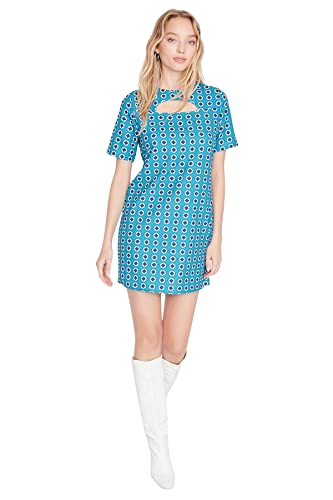 TRENDYOL Dam minishift nackkrage vävd klänning för kvinnor, Blågrön, 38
