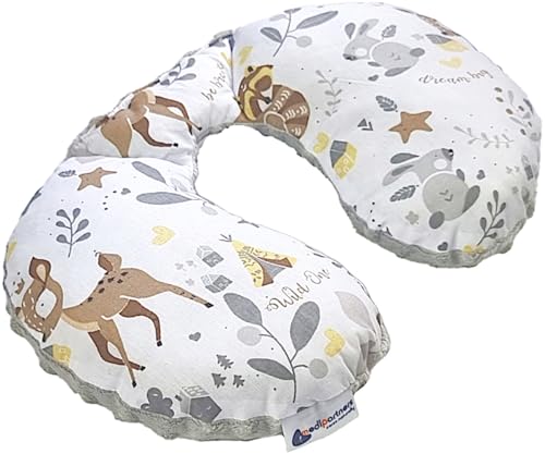 Medi Partners nackkudde barn nackhörn bil flygplan baby – 100% bomull/minky nackstöd nackstöd barnstol bilstol nackrulle kudde (rådjur med grå minky)