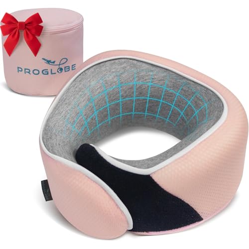 Resekudde – mjuk nackkudde i minnesskum för vuxna, barn, bekväm och bärbar u-formade nackkuddar, söta djurflygplanskudde för hem, kontor, camping, resor, sömn (rosa)