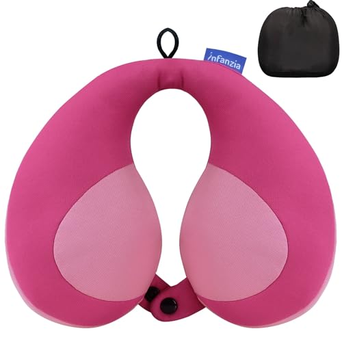 INFANZIA Nackresekudde för barn, anmärkningsvärd huvudhaka, nackkudde för barn i bilbarnstolen, flygplan, buss eller barnvagn, stödjer sömniga huvuden, gåvor för småbarn/barn, rosa