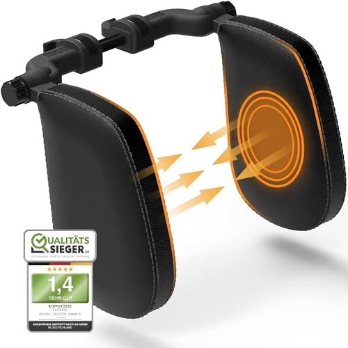 FLIPLINE nackstöd bil barn svarta sömmar – bekväm resekänsla för barn och vuxna – installation på 2 minuter utan skruvmejsel – nackstöd nackkudde bilkudde bil nackkudde