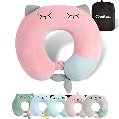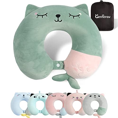 Gentlepaw Resekudde - mjuk nackkudde i minnesskum för vuxna, barn, bekväm och bärbar U-formad kudde, gulligt djurflygplanskudde för hem, kontor, camping, resor, sömn (grön)