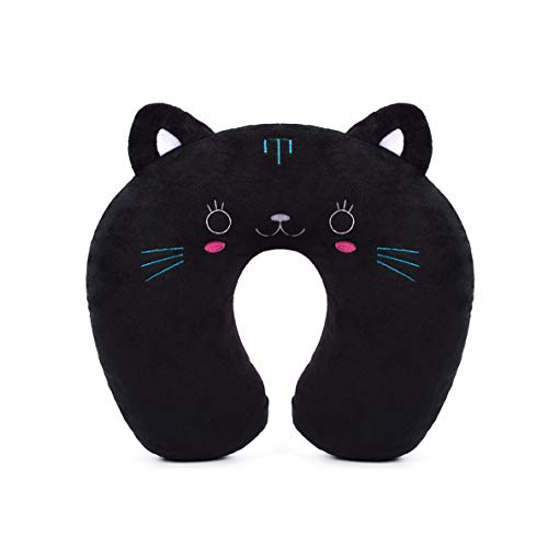 H HOMEWINS Barn resekudde barn nackkudde haka och nackstöd kudde med djurmönster supermjukt skydd resepartner för bil tågflygplan, Katt (Svart) - cat