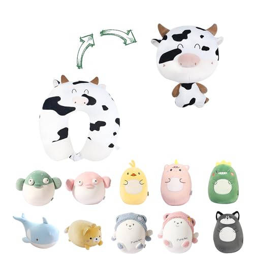 JOYRAVO Resekudde för barn, 2-i-1, mjuk och förtjusande plyschdjur som omvandlas till en U-formad nackkudde för ultimat komfort under resor med flygplan, tåg, buss, mjölkko