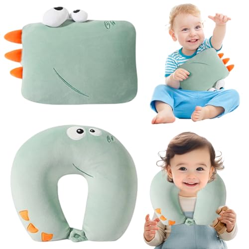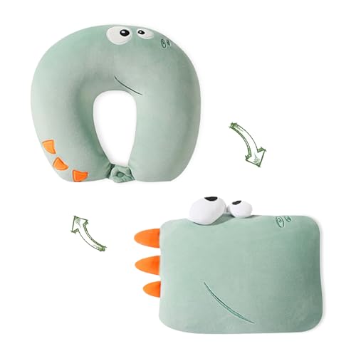 JOYRAVO Resekudde för barn, 2-i-1, mjuk och förtjusande plyschdjur som omvandlas till en U-formad nackkudde för ultimat komfort under resor med flygplan, tåg, buss, dinosaurie