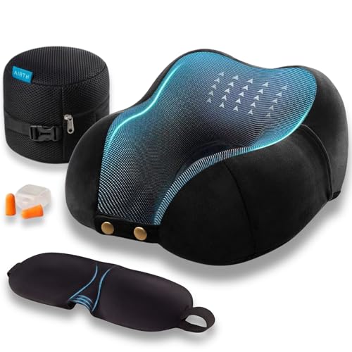 AIRTH® Resor nackkudde, resekudde av minnesskum och tyg, optimalt stöd tack vare minnesskum | premium resekudde med gratis sovmask och öronproppar, svart, Einheitsgröße