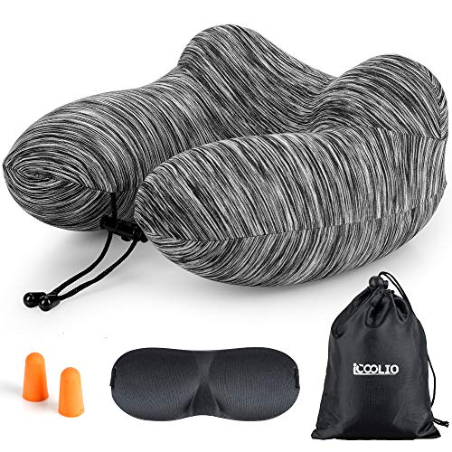 iCOOLIO Nackkudde flygplan, nackkudde, uppblåsbar, resekudde, bil, nackhörna vuxen med sovmask, resekudde, tvättbart överdrag, resekudde