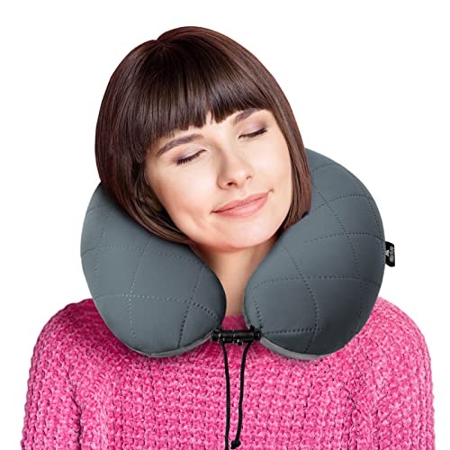 Elitecran Uppblåsbar resekudde, nackkudde, flygplan kudde, bärbar resekudde, vikbar bekväm, multifunktionell resenackkudde för att sova på flygplanet, tåg hemma, kontor (grå), Schwarz , Grau