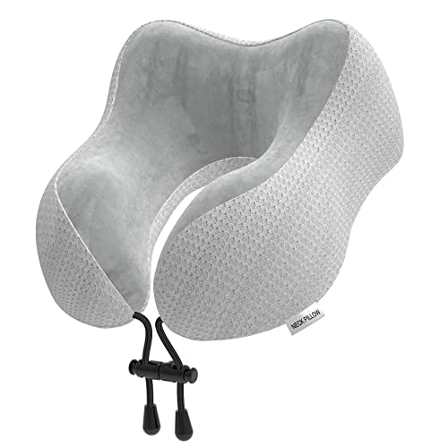 Nackkudde flygplan, resekudde bil resekudde av minnesskum med sammetslen mjukt överdrag, nackhörn vuxna för resor, camping, kontor och hem (ljusgrå)