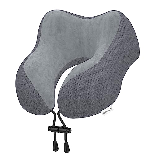 Yomisee nackkudde flygplan, resekudde bil av minnesskum med sammetslen mjukt överdrag, nackhörn vuxna för resor, camping, kontor och hem (grå)