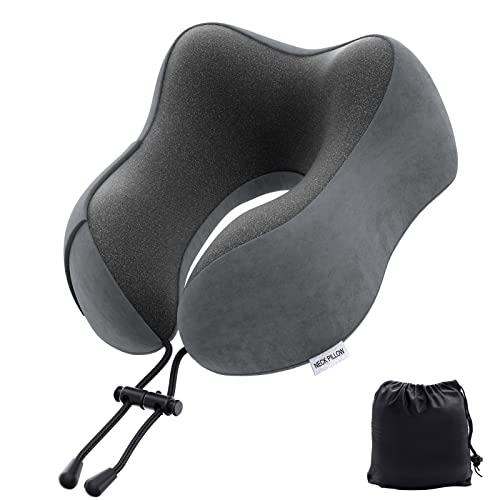 Senders Resekudde minnesskum nackkudde lätt snabbpack för flygplan tåg bil nackstöd kudde för resor camping (mörkgrå)