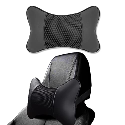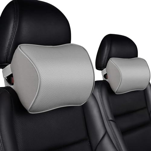 au-kee Minnesskum bil nackkudde mjukt läder bil nackstöd för körning hem kontor grå (förpackning med 2)