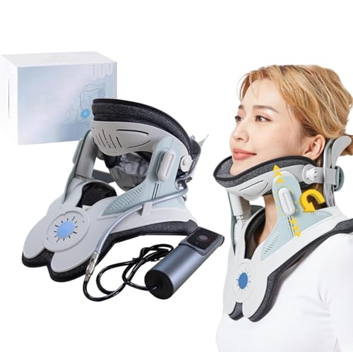 Nacksträckare, professionellt nackstöd, justerbar halskrage människa, knäbuckla bort, med dragkraft och krockkuddesstöd, stabil för att lindra trycket på halsryggen för kvinnor och män
