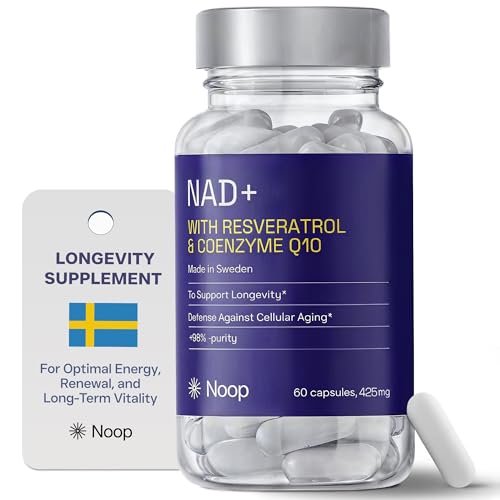 Noop NAD+ Kosttillskott med Resveratrol & CoQ10 (Koenzym Q10), 450mg, 2 månaders kur, Anti-aging tillskott, Energitillskott för cellförnyelse, Mitokondriell hälsa - 60 veganska kapslar