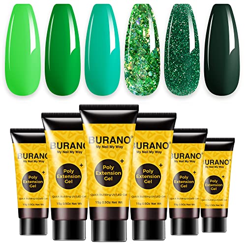 BURANO UV GEL Nails Kit, Nagelförlängningsgel Poly Nails Gel Set, Poly Extension Gel 6 Färger Byggare Gel Nagel Förlängning (green)