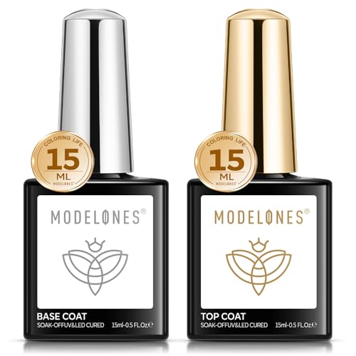 Modelones Topp och Baslack 15ml x 2 Gellack UV LED Nagellack, Gel Nail Polish Underlack & Överlack Set för Nagelkonst Nagel Kit
