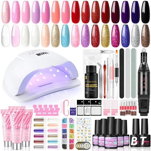 COSCELIA Gel Nagellack Starterset mit UV Lampe 10 Farben*7ML UV Gel Nail Polish und 3 Farben*15ML Poly Nagel Gel Set mit Elektrische Nagelfräser Gel Nägel Selber Starterset Nail Art System für Zuhause