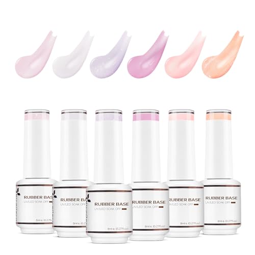 Nicedeco 4 i 1 Professionell Base Gummi Gel Kit Halv Permanent Nagel Naglar UV LED Soak Off Gel Set 38, 6 x 8 ML