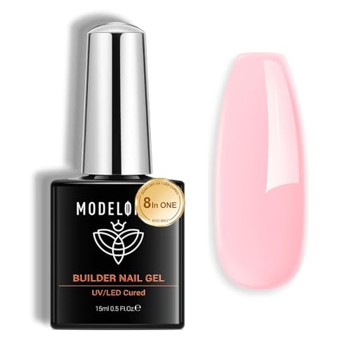 modelones Builder Nail Gel Gellack, Nagel Kit for Nails, 8-in-ONE Rosa Hard Strengthener Extension Color Base Rhinestone Polygel Gel Polish 15 ML, Gifts Women