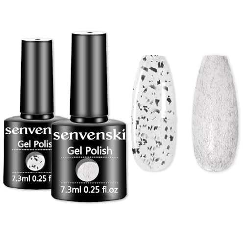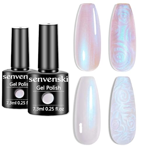 Senvenski Pärla Gel Nagellack, Vit Rosa Opal Sjöjungfru Nagel Gele, Aurora Skal Glitter Holografiskt Gel Nail Polish Gåva UV LED Manikyr Konst Lack Kit Set (CS2-012)