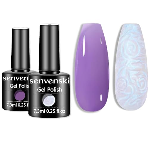 Senvenski Lila Jelly Gel Nagellack, Pärla Opal Sjöjungfru Nagel Gele, Gelé Kristall Klar Glas Lila Gel Nail Polish Gåva UV LED Manikyr Konst Lack Kit Set (CS2-019)