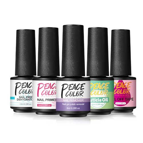 PEACECOLOR Primer Naglar Prep Dehydrator Set - Nagellack Gel Nail Prep Dehydrator Nagelbandsolja Levasmaltgel och Peeling Off Nail Rekonstruktion Design - 5 st i 1 Set