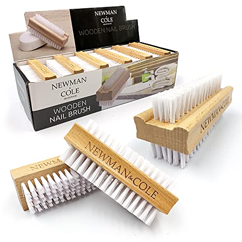 Nagelborste i trä, dubbelsidig nagelskrubbborste med fast plastborst (set med 3)