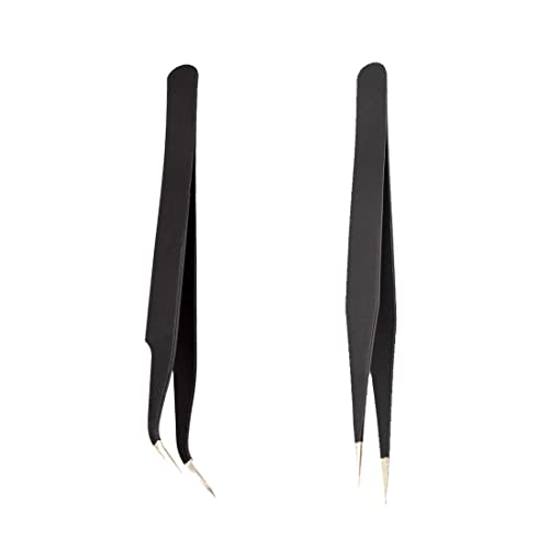 2-pack pincetter av rostfritt stål, rak, krökt, spetsigt, för ögonfransförlängning och nagelklistermärken, strass ögonfranspackare, akrylgelnaglar, gör-det-själv-konst