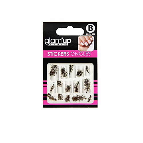 Glam'Up Paris - nagelklistermärken för nagelkonst - nr 30-206 - gyllene påfågelfjäder