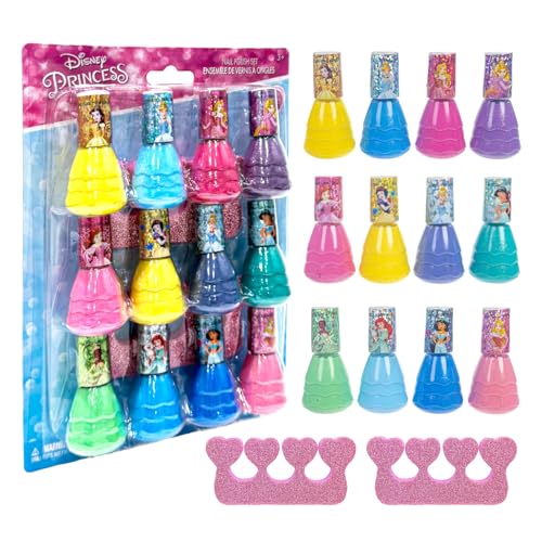 Disney Princess - Townley Girl, giftfri vattenbaserad Peel-Off Naturlig Säker Snabbtorkande Nagellack|Presentpaket för barn Tween Girls|12 st - Perfekt för fester, makeovers